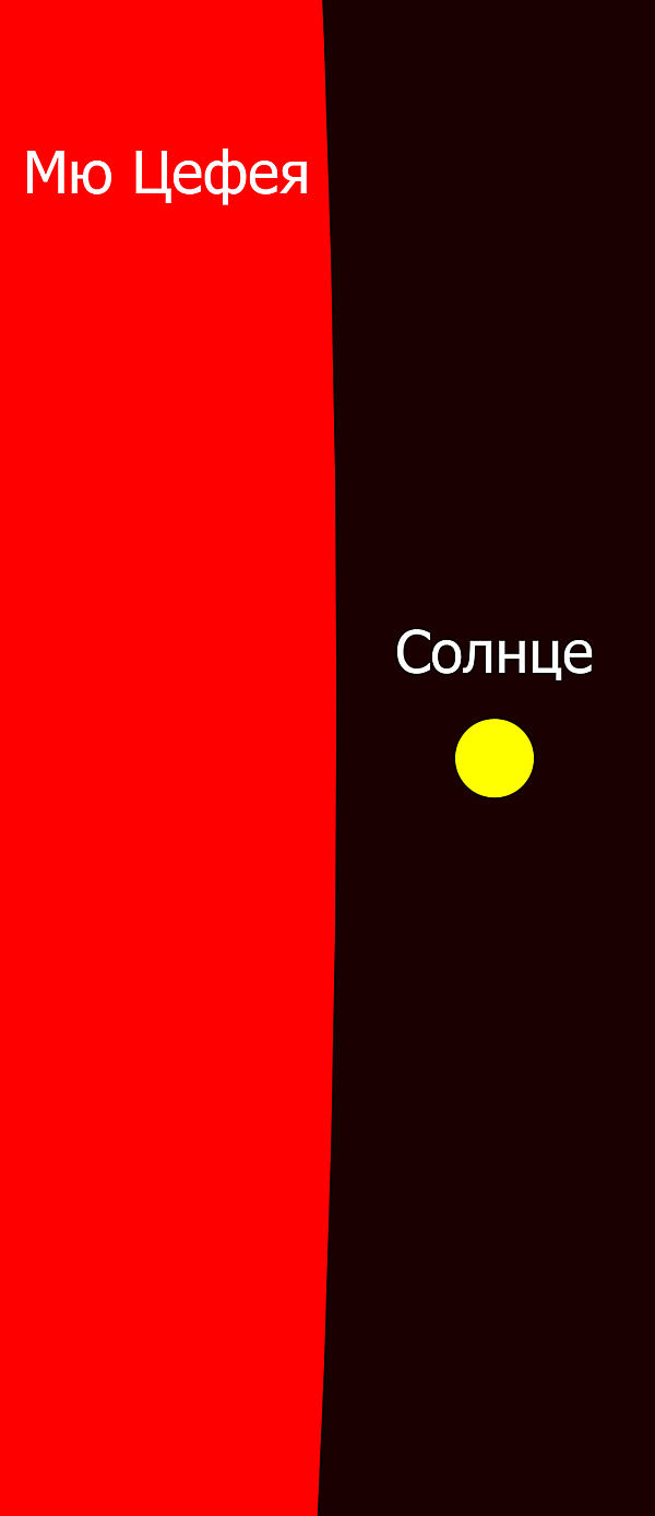 | μ Cep B | 2-5 M☉ | 24 R☉ | 36,58 L☉ | 3850 K | 15,2 д. |