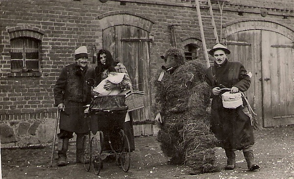 Мясопустные ворачки проходили три дня: с воскресенье по вторник перед Пепельной средой и заканчивались всегда в трактире[45]. Во время обряда ряженые по селу возили плуг на колёсиках (образ Мясопуста). Ряжеными, как правило, выступали «крестьянин», «баба», «еврей» и «трубочист» или девушки с соломенными венками на головах. Участники обряда носили корзины с песком, которым засевали борозду на снегу. Во время обхода села ряженые обходили дворы, где их одаривали зерном, продуктами и монетами. Парень с сумкой и колоколом, типа церковного, собирал деньги, «еврей» собирал колбасу, сало и булочки в мешок, а «трубочист» — копчёное мясо и яйца в суму или корзину. После обряда плуг разламывали на части, причём «пахарь» оказывался «раненым», и его на тачке отвозили в трактир[45]. Мясопуст здесь выступал в роли ритуальной жертвы[44].