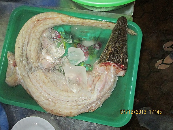 Ассорти из крокодилового мяса содержит мясо из хвоста и спины животного[5].
