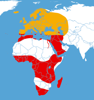 Изначально родиной европейских популяций является Северная Африка. Даже популяции, обитающие на юге Европы, периодически нуждаются в пополнении за счёт мигрантов из более южных регионов[14].