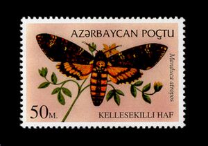 - ↑ Dubatolov V. V., Titov S. V. 2011. Discovery of Acherontia atropos L. (Lepidoptera, Sphingidae) in North-East Kazakhstan // Amurian zoological journal. Vol. III. No 1. P. 58—59, colour plate V.
