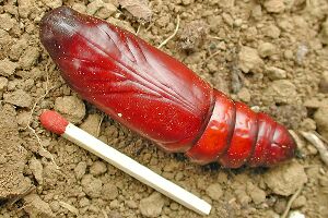 Куколка гладкая, блестящая, длиной 50—65 мм у самца и 65—75 мм у самки, максимум до 80 мм. Вес куколки самцов — 7—10 г, самок — 7—12 г[15]. Сразу после окукливания цвет куколки может быть от жёлтого до кремового, иногда с зеленоватый оттенком на спинке. Через 12 часов куколка приобретает окончательную красно-бурую окраску. Обычно располагается в почве на глубине 15—40 см, в ломком земляном коконе[15]. Стадия куколки длится около месяца[1].