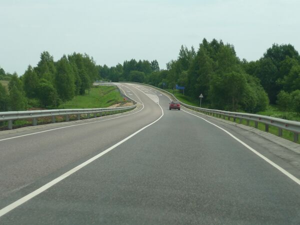После Волоколамска дорожное полотно сужается до одной полосы в каждую сторону, разделительная полоса отсутствует.