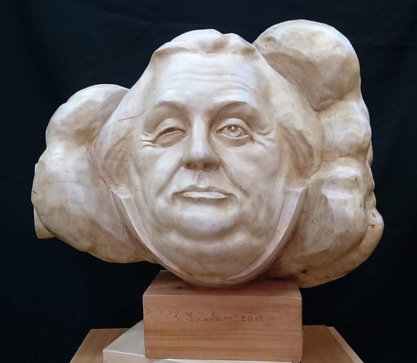 Изделие изготовлено из древесины с применением техники резьбы по дереву. Резьба позволяет детально передать текстуру материала, особенности черт лица и сохранить природные свойства древесины.