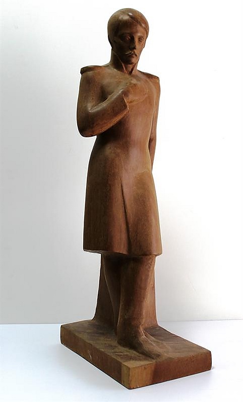 Скульптура изготовлена методом вырезания из красного дерева. Этот метод предполагает удаление лишнего материала, что позволяет добиться высокой детализации.
