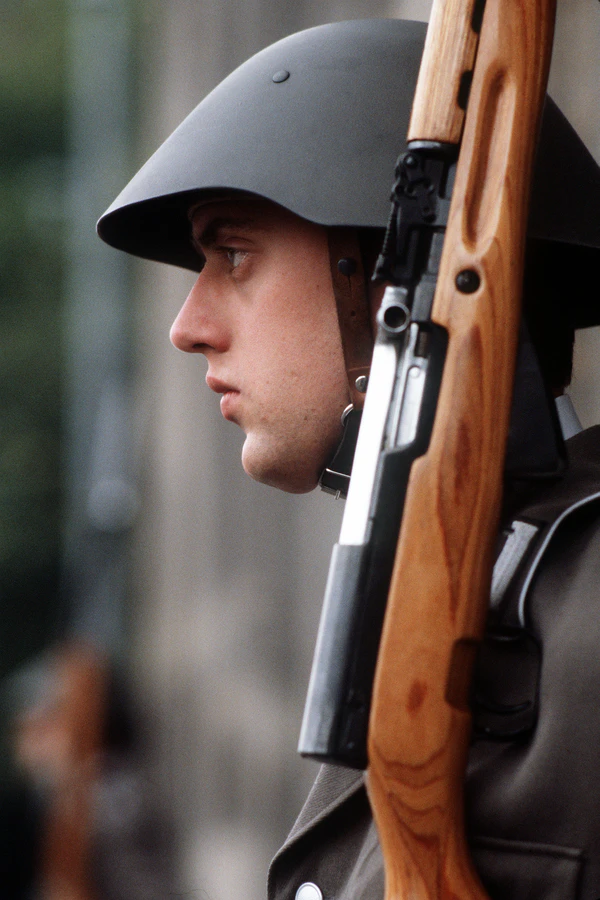Данный образец не находил применения до тех пор, пока не возникла потребность в отечественном шлеме для Volkspolizei и Национальной народной армии. Руководство Восточной Германии в значительной степени мотивировалось желанием не спровоцировать негативную реакцию, которую могло вызывать использование традиционного штальхельма у союзников Восточной Германии по Варшавскому договору (особенно Чехословакии, Польши и Советского Союза)[2]. Была и практическая причина — оставшиеся от Вермахта запасы шлемов М35 и М42 продолжали использоваться западногерманскими частями, в частности пограничниками. Более того, восточные немцы подозревали, что ФРГ может в любое время возобновить выпуск штальхельмов на общих основаниях для бундесвера и поэтому нуждался в шлеме, легко отличимом от шлема их вероятного противника. По обеим причинам экспериментальный образец 1942 года, вероятно, был выбран потому, что он был наиболее похож из всех немецких образцов на самые узнаваемые советские каски, в частности на СШ-40. Такая конструкция не только служила политическим целям, но и вряд ли могла быть точно воспроизведена в армиях НАТО. М56 имел определённое сходство с СШ-40, поэтому некоторые жители Западной Германии вообще не осознавали его немецкого происхождения и предполагали, что восточные немцы переняли шлем советского образца.