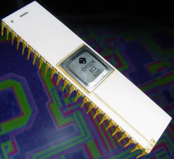 В 1965 году во время визита на ВЗПП министра электронной промышленности А. И. Шокина заводу было поручено провести научно-исследовательскую работу по созданию кремниевой монолитной схемы — НИР «Титан» (приказ министерства от 16.08.1965 г. № 92), которая была досрочно выполнена уже к концу года[2]. Тема была успешно сдана Госкомиссии, и серия 104 микросхем диодно-транзисторной логики стала первым фиксированным достижением в области создания интегральных схем твердотельной микроэлектроники, что было отражено в приказе МЭП от 30.12.1965 г. № 403[3].