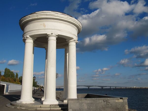 С набережной открывается вид на автодорожный мост через Волгу, постройка которого была завершена в 1965 году.