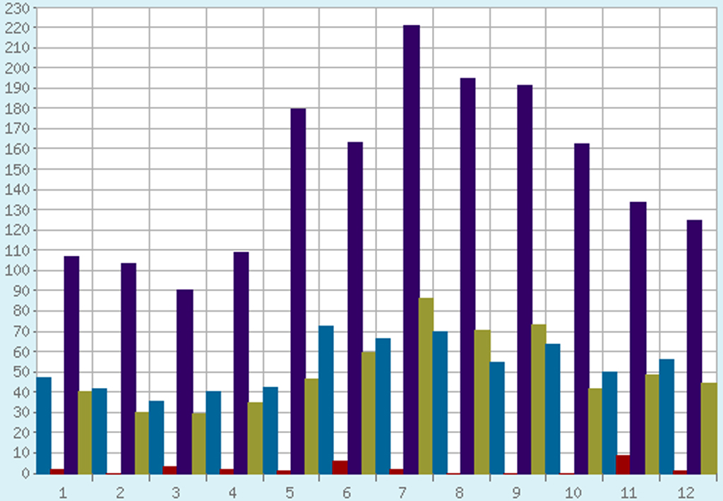 | туман | 1 | 2 | 2 | 1 | 1 | 1 | 2 | 1 | 3 | 3 | 4 | 2 | 23 |