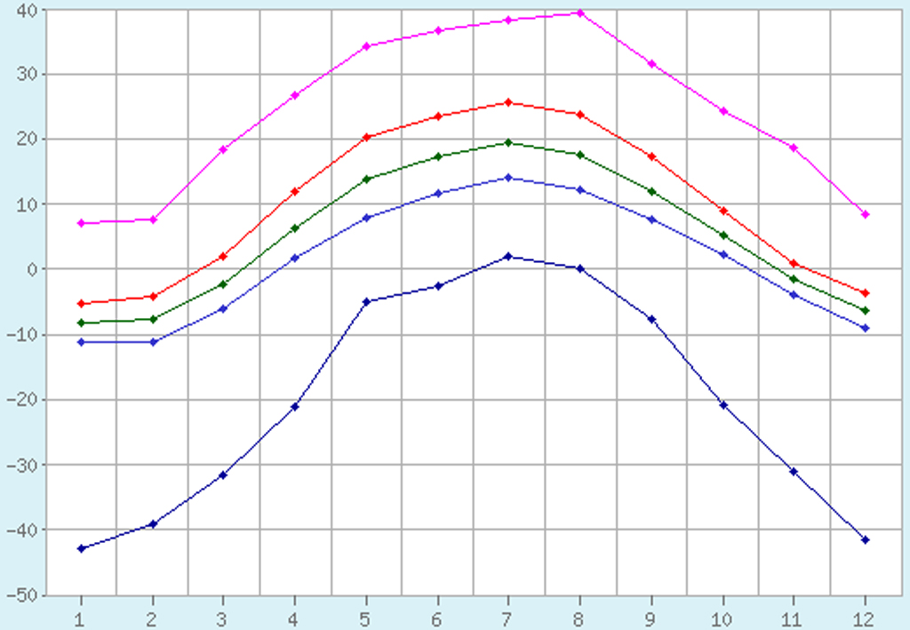 | 2011 год | −10,7 | −13,8 | −4,8 | 4,9 | 14,4 | 17,6 | 22,6 | 18,9 | 12,0 | 6,0 | −2,4 | −2,4 | 5,2 | −0,2 |