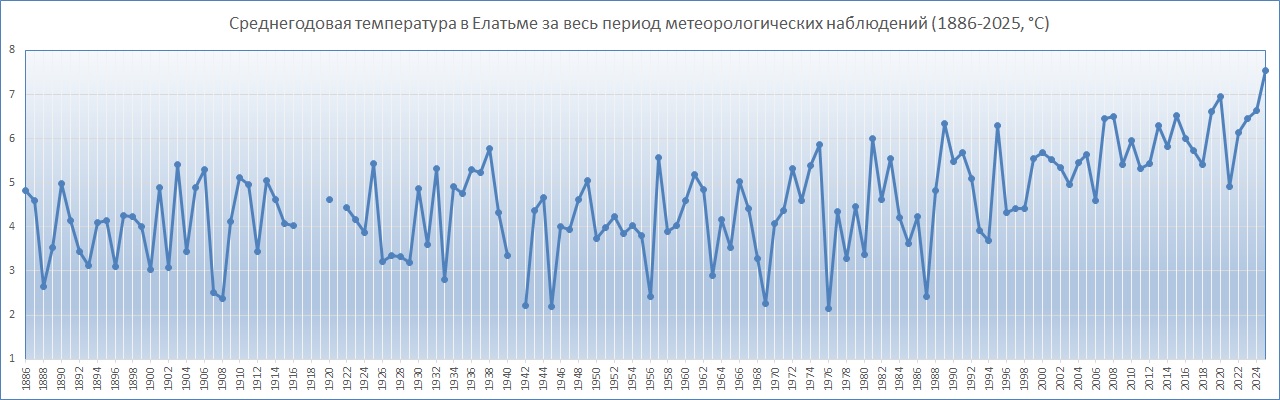 МС Елатьма — одна из немногих в центральном регионе станций, обладающих столь длительным и практически непрерывным рядом наблюдений (полностью отсутствуют данные за период 1917—1919 годов, есть незначительные пропуски в фиксации отдельных параметров в 1911, в 1921 и в 1941 годах).