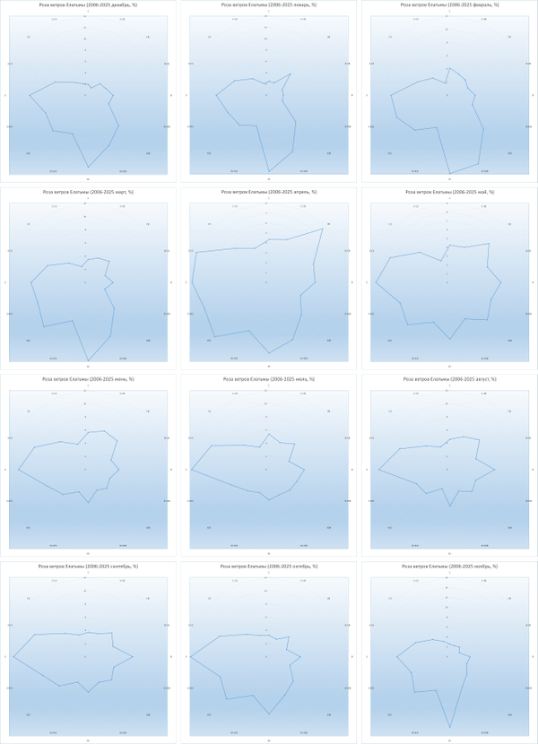 | Повторяемость различных направлений ветра, % | |||||||||||||