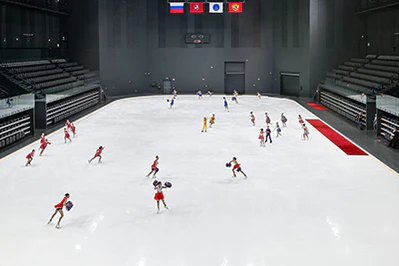 Общая площадь ледового дворца — 20,6 тыс. м². Он включает главную ледовую арену 60×26 м с трибунами на 2025 посадочных мест и тренировочную ледовую арену 60×30 м — обе соответствуют стандартам Международного союза конькобежцев (ISU) и Международной федерации хоккея на льду (IIHF).