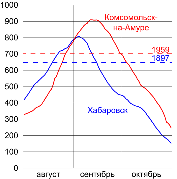 - 10 сентября уровень воды в Амуре 895 см[44].