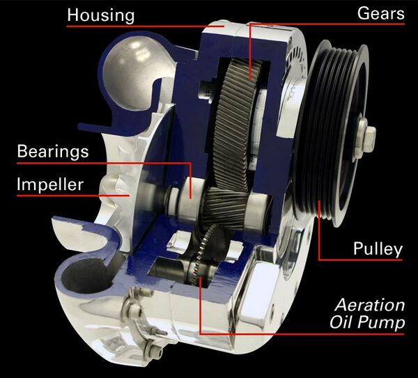 Известны разработки воздуходувок/насосов как на основе объёмных компрессоров, так и на основе центробежных. Пример первого варианта — советские автомобильные дизельные моторы ЯАЗ-204 и ЯАЗ-206. Пример второго варианта — советский/украинский танковый многотопливный мотор 5ТДФ. При этом свойство центробежных компрессоров увеличивать давление наддува с ростом оборотов может использоваться и для целей форсировки мотора в режиме высоких оборотов. Наличие воздуходувки/насоса не отменяет возможности дополнения подобного двухтактного мотора турбонагнетателем, задачей которого является форсировка мотора в чистом виде. Примером таких моторов с турбонаддувом и без будут конструктивно идентичные локомотивные дизели 10Д100 и 2Д100 тепловозов ТЭ10 и ТЭ3.
