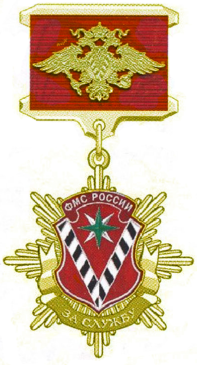 | Медаль ФМС России «За заслуги в управленческой деятельности»[37] трёх степеней — I, II, III степени |