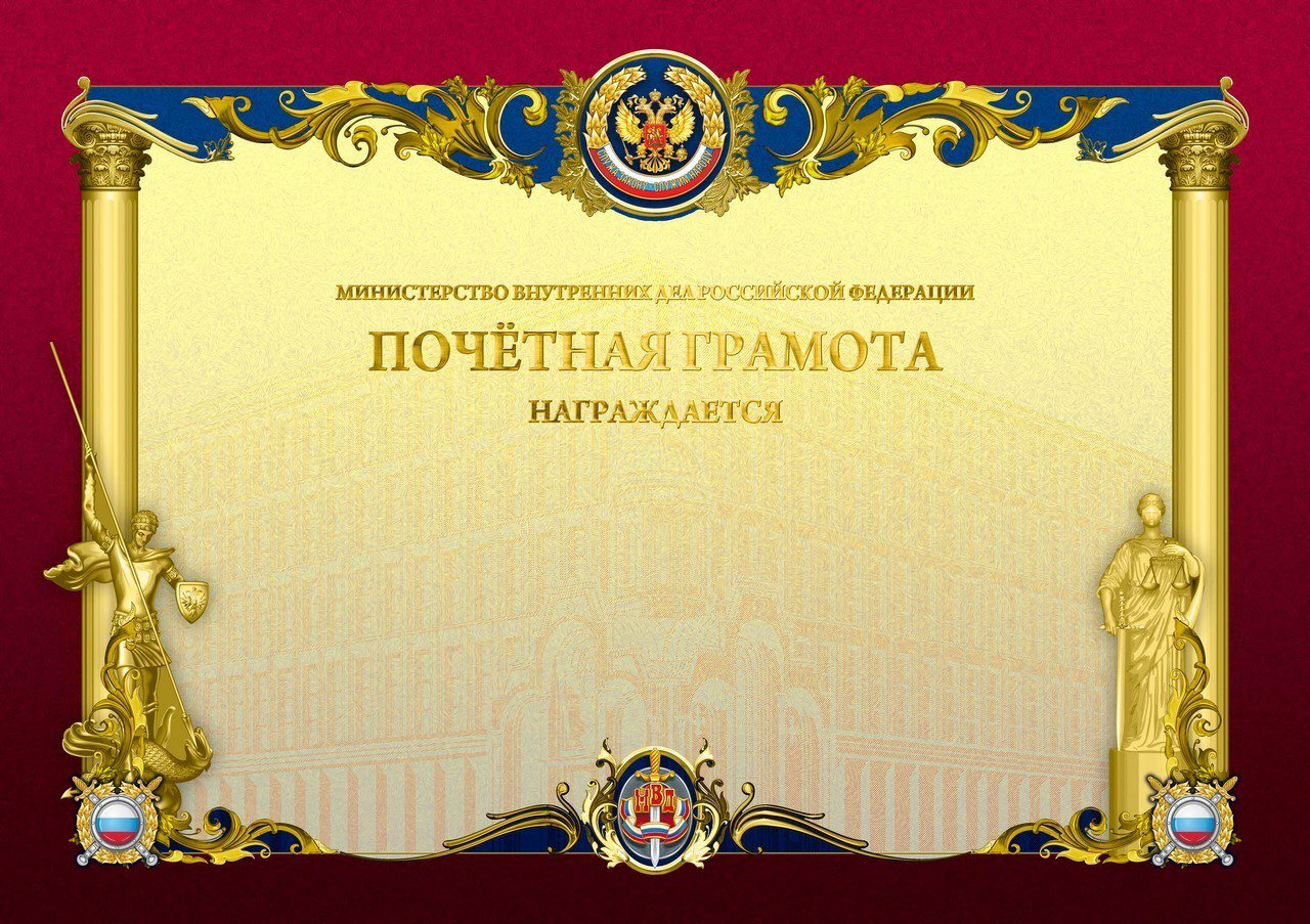 | Почётная грамота МВД России | 28 июля 2020 | Действующее положение утверждено приказом МВД России от 28 июля 2020 г. № 525 (Приложение № 24). Предыдущий приказ от 5 февраля 2014 г. № 77 утратил силу[18]. | |