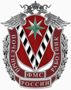 Высший ведомственный знак отличия ФМС России. Нагрудным знаком награждаются сотрудники органов внутренних дел Российской Федерации, прикомандированные к ФМС России, федеральные государственные гражданские служащие и работники ФМС России за особые заслуги в выработке и реализации государственной политики в сфере миграции и осуществлении правоприменительных функций, функций по контролю, надзору и оказанию государственных услуг в сфере миграции, за образцовое выполнение служебного долга и проявленные при этом инициативу, мужество и самоотверженность, показавшие высокое профессиональное мастерство, соблюдающие служебную (трудовую) дисциплину, продемонстрировавшие высокую культуру в работе, безупречное служебное поведение и личную скромность. | |