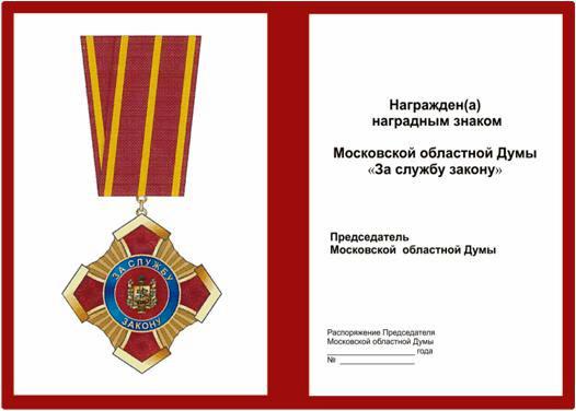 Положение о наградном знаке Московской областной Думы «За службу закону» от 28 ноября 2013 г. | |