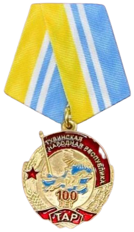 Юбилейная медаль «100-летие образования Тувинской Народной Республики» является памятным юбилейным знаком Правительства Республики Тыва и учреждается Главой Республики Тыва. Юбилейной медалью награждаются граждане за заслуги в содействии проведению социальной и экономической политики республики, за многолетнюю добросовестную работу. Вместе с юбилейной медалью вручается удостоверение установленного образца. |