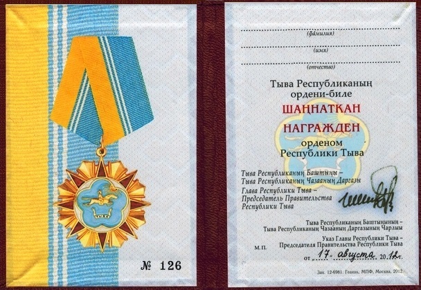 Закон Республики Тыва от 24 декабря 1992 года № 388 «О государственных наградах Республики Тыва» |