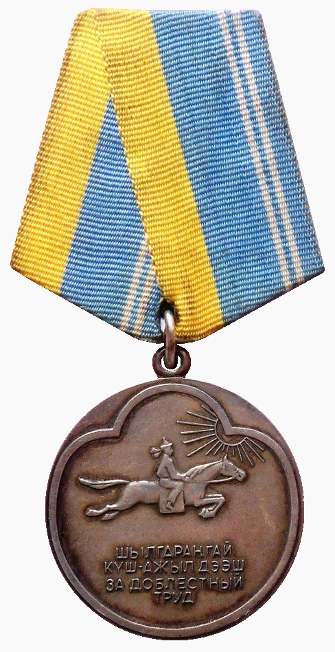 Медалью Республики Тыва «За доблестный труд» (Мурнакчы) награждаются рабочие и специалисты народного хозяйства, работники науки и культуры, образования и здравоохранения, государственных учреждений и общественных организаций, а также другие граждане республики, внесшие своим самоотверженным трудом вклад в экономическое и социально-культурное развитие республики и проявившие при этом доблесть. Медалью могут быть награждены организации различных организационно-правовых форм. Медаль Республики Тыва «За доблестный труд» носится на левой стороне груди. Руководители организаций, награждённых медалью, определяют места хранения медали, обеспечивающие её сохранность и возможность ознакомления с ней работников организации. |