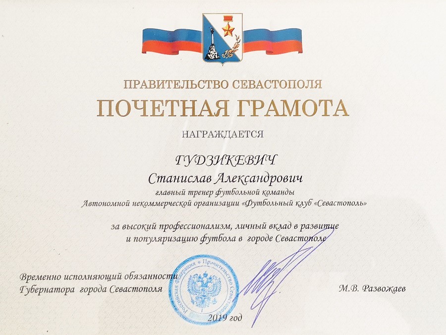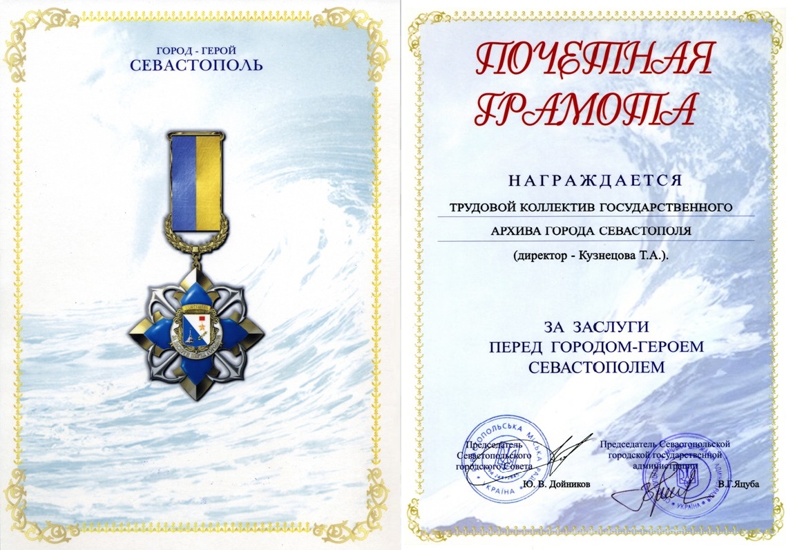 - почётная грамота Правительства Севастополя;