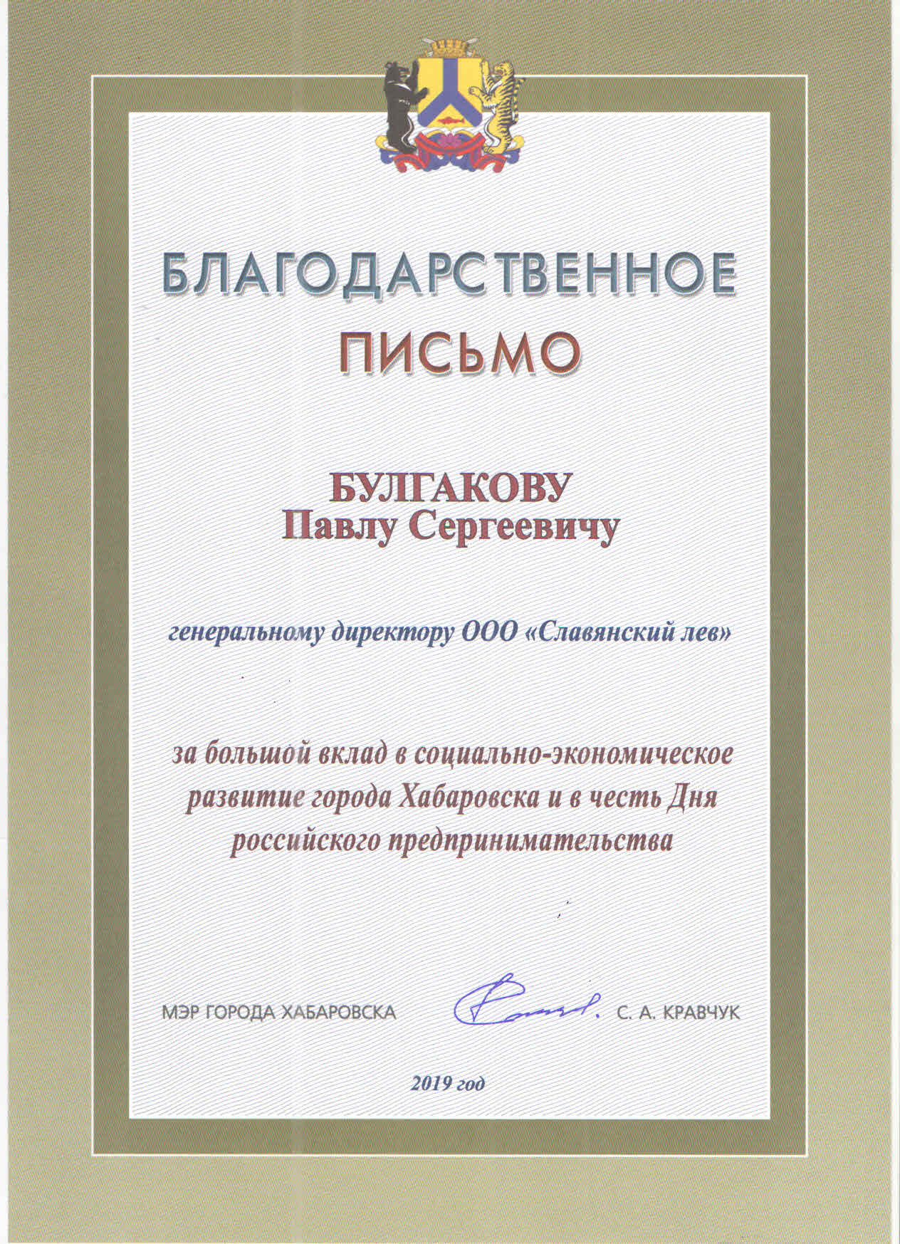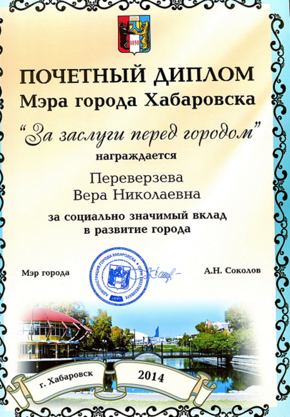Благодарность мэра города Хабаровска[5] |