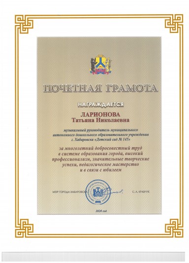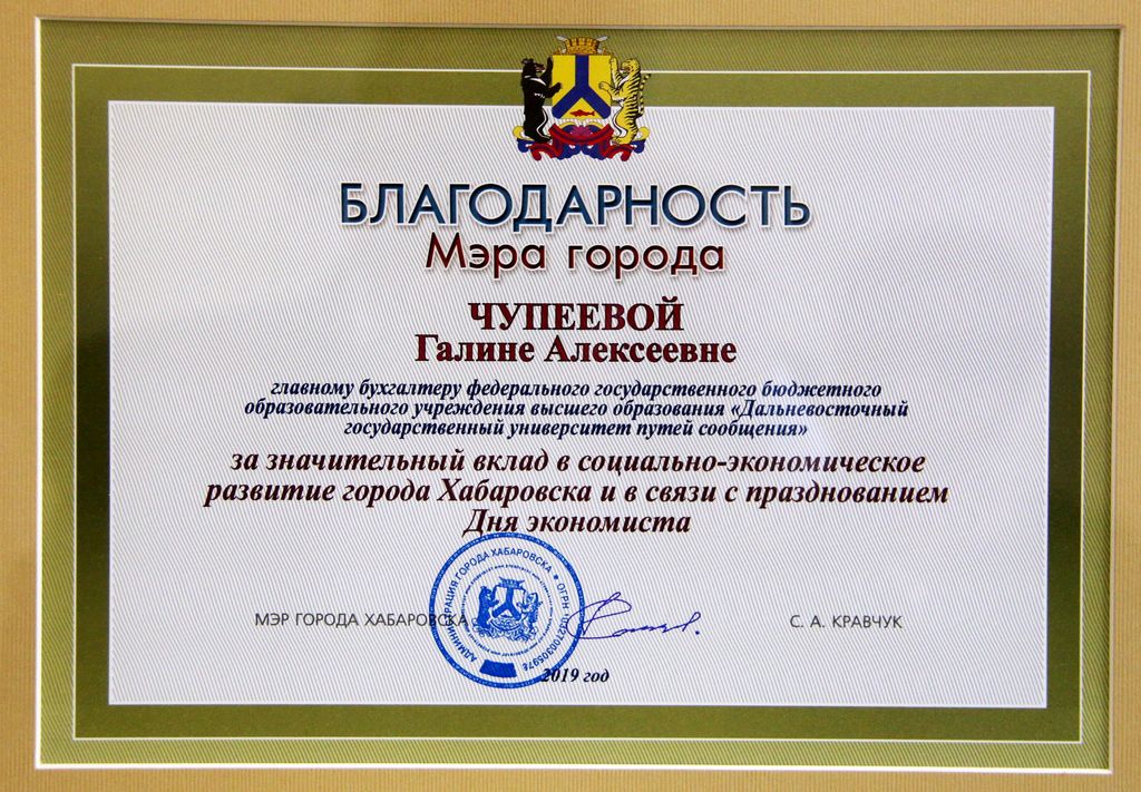 Благодарственное письмо Администрации города Хабаровска[5] |