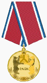 Медаль «За вклад в развитие города» является одной из форм поощрения, которая учреждена в целях выражения признания заслуг граждан перед городом Хабаровском. Медалью «За вклад в развитие города» награждаются граждане Российской Федерации, иностранные граждане, профессиональная и общественная деятельность которых внесла значительный вклад в экономическое, социальное, научно-исследовательское, культурное развитие города Хабаровска. | |