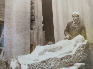 Сохранилась фотография, запечатлевшая Александра Матвеева за работой над окончательной версией надгробия в граните, сделанная в 1910—1911 годах в посёлке Кикерино. Её размер 5,7 × 8,3 см. Она поступила в Саратовский художественный музей имени А. Н. Радищева в 1978 году в качестве дара от племянницы скульптора М. С. Бочаровой-Матвеевой и в настоящее время находится в собрании Личного фонда А. Т. Матвеева в этом музее[27].