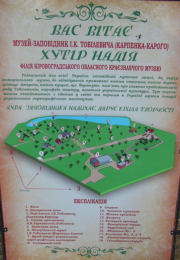 «Хутор Надежда» — государственный заповедник-музей И. К. Карпенко-Карого (Тобилевича). Как и музейно-природный заповедник «Тобилевичи» является филиалом Кировоградского областного краеведческого музея.