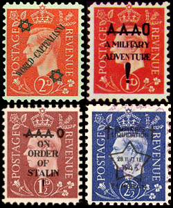 Пропагандистские надпечатки имеют статус подделок (forgeries), фальсификаций (fakes) или фантазий (Синдерелла (филателия)||Cinderella stamp}}). Случаев прохождения ими почты обычно немного, большинство попыток запуска в обращение идентифицируются и ликвидируются почтовыми служащими и/или спецслужбами государства-жертвы. Как следствие, на филателистическом рынке циркулирует большое количество подделок этих подделок.