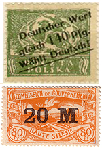 Многие страны прибегают к надпечаткам новой стоимости при переходе на иную денежную единицу. Например, в 1874 году в объединившейся Германской империи вместо грошей и крейцеров появились пфенниги и марки — в связи с чем было решено надпечатать находившиеся в обращении тиражи цифрами новых номиналов. Однако название новой валюты не было проставлено, из-за чего возник любопытный казус: марки номиналом 2½ гроша были надпечатаны «2½», а марки достоинством 9 крейцеров — «9».