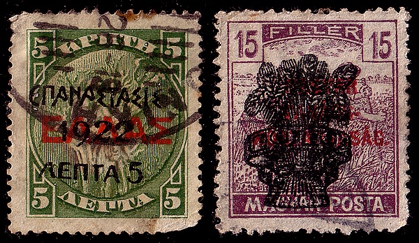 Например, существуют перепечатки 1922 года греческих революционеров на марках недавно ставшего частью независимой Греции острова Крит, перепечатки контрреволюционного режима Хорти на марках, прежде надпечатанных Венгерской советской республикой в 1919 году, повторные надпечатки властей независимой Польши на надпечатках Варшавского генерал-губернаторства на марках Германии и другие подобные случаи.