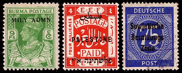 Таковы, например, выпуски французского колониального корпуса для Судана, британских вооружённых сил в итальянских колониях Северной и Восточной Африки и в освобождённой от японцев Бирме (см. Британская военная администрация), египетского экспедиционного корпуса в Палестине, австралийских сил в Папуа и Новой Гвинее, выпуски военных администраций стран-союзниц по антигитлеровской коалиции в своих оккупационных зонах побеждённой Германии и многие другие случаи.
