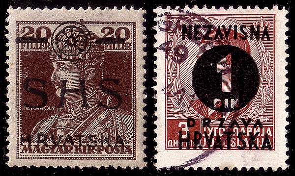 Именно так печатало свои марки, например, Временное правительство Южной Ирландии в 1922 году, используя стандартные выпуски Великобритании, прогитлеровская власть Независимого государства Хорватия в 1940 году, освободившийся от колониального режима Занзибар в 1964 году и многие другие приходившие с помощью переворотов к власти правительства.