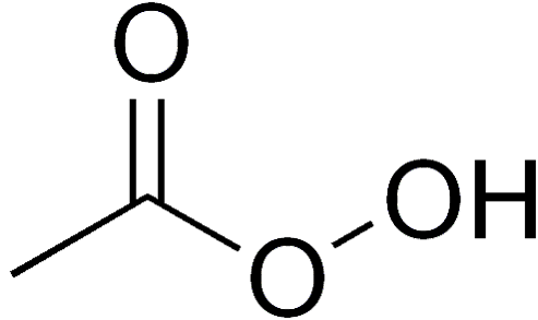 Надуксусная кислота CH3C(O)OOH образуется при воздействии концентрированного пероксида водорода на ледяную уксусную кислоту, константа равновесия при этом составляет 0,37.