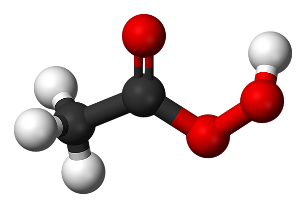 Пероксиуксусная кислота убивает микроорганизмы, окисляя и впоследствии разрушая мембрану клетки, через гидроксил (HO•). Если диффузия гидроксила медленнее, чем период его полураспада, то он реагирует с любой способной окисляться частицей. Он может разрушить практически любую макромолекулу связанную с микроорганизмом: углеводы, нуклеиновые кислоты (мутация), липиды и аминокислоты (фенилаланин переводит в м- и о-тирозин). Это немедленно ведёт к распаду клетки и её гибели.