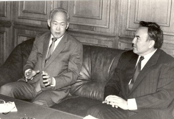 он сам (как президент Казахской ССР; высшее должностное лицо); Ерик Асанбаев (как председатель Верховного Совета Казахской ССР; спикер парламента) |