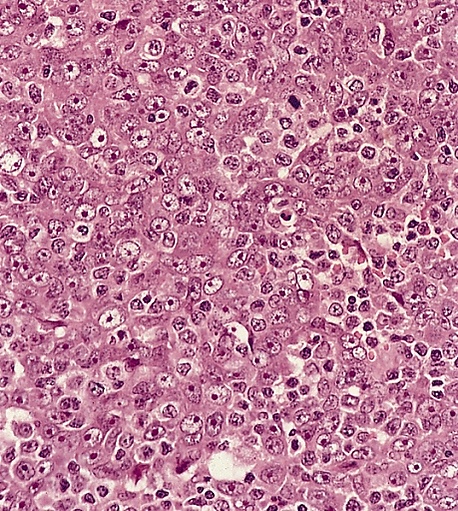 - неороговевающий рак, недифференцированный подтип: характеризуется либо синцитиальным расположением клеток с нечёткими границами, либо диффузным инфильтратом из не связанных между собой клеток, напоминающим неходжкинскую лимфому. Опухолевые клетки имеют умеренно эозинофильную или амфофильную цитоплазму, округлые ядра, крупные эозинофильные ядрышки и везикулярный хроматин. Значимого ороговения не наблюдается. Практически всегда присутствуют апоптоз и высокая митотическая активность. Обычно, хотя и не всегда, опухоль сопровождается выраженным неопухолевым лимфоплазмоцитарным инфильтратом. Некроз встречается редко;