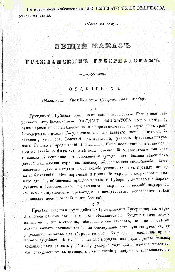 Также были изданы[13] Общий наказ Гражданским Губернаторам от 03.06.1837 г., ряд других подобных актов в форме наказа.