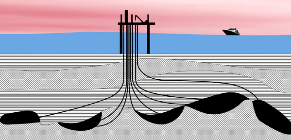 - Возможность кустового бурения, когда устья скважин группируются на небольшой площадке и они могут буриться одной буровой при незначительном её передвижении. К примеру, морская буровая платформа может подготовить порядка 40 скважин с одной площадки.