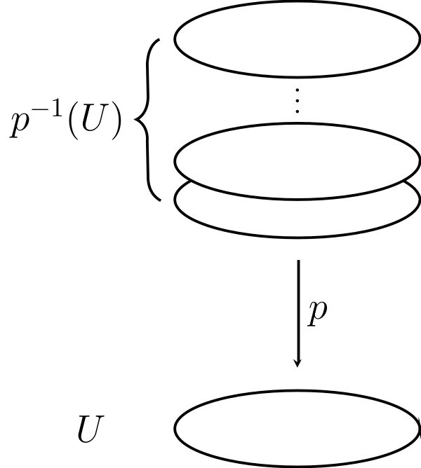 Накрытие — непрерывное сюръективное отображение линейно связного пространства на линейно связное пространство , такое, что у любой точки найдётся окрестность , полный прообраз которой представляет собой объединение попарно непересекающихся областей :