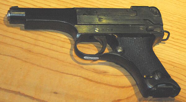Позднее департамент предъявил права на участие в разработке пистолета, и результат оказался довольно плачевным. В конструкции затвор полностью закрывает сверху рамку, а взвод курка осуществляется оттягиванием затвора с помощью рифлёных ушек сзади корпуса; но при этом приходит в действие предохранитель, который находится с левой стороны рамки, что могло привести к случайному выстрелу. Спусковой механизм был ненадёжен, и это также могло стать причиной неожиданного выстрела до замыкания казённой части. К тому же сами пистолеты были выполнены очень некачественно, на скорую руку; особенно плохи образцы, произведённые в 1944—1945 годах. При случайном падении оружия стоявший на боевом взводе ударник срывался с шептала, что приводило к самопроизвольному выстрелу.