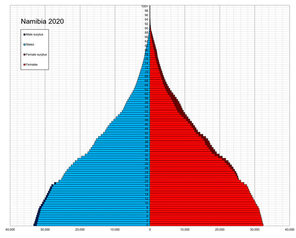 В Намибии живёт 2 746 745 чел. (2020 г.).