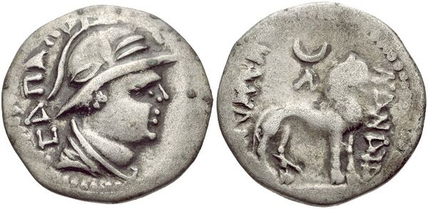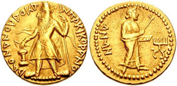 Нана впервые засвидетельствована именем на монете Сападбиза, царя Бактрии I века до нашей эры, который предшествовал кушанам. В этом единственном случае Нана изображена как лев. Затем, спустя два столетия, Нана вновь появляется на монетах и печатях кушанских царей, в частности, Канишки I середины II века. Рабатакская надпись «Канишка I» также взывает к ней. Её характеристики воинственны в этих изображениях, и она обычно изображалась как сидящая военная богиня, сопровождаемая львом[2]. Она также была связана с плодородием, мудростью и как богиня вод (в частности, реки Инда, которая была известна как Харахвати в Авесте, и покровителем которой была Харахвати Ардеви Сура Анахита).
