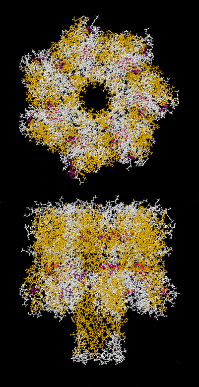 Моторный белок упаковки ДНК бактериофага phi29 участвует в упаковке ДНК в капсид вирусов, а также в выходе ДНК из капсида при инфицировании. Ключевым отличием от вышеупомянутых белков является то, что имея больший диаметр канала (от 3,6 нм до 6 нм), он способен пропускать двухцепочечную ДНК. Из-за своей природы моторный белок phi29, в отличие от других пор, в своей исходной форме не встраивается в мембрану, однако эта проблема решается модификацией белка[26]. Другие модификации позволяют белку пропускать одноцепочечную ДНК или одноцепочечную РНК[27].
