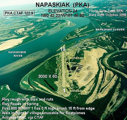 Аэропорт Напаскиак расположен на высоте 7 метров над уровнем моря и эксплуатирует две взлётно-посадочные полосы[1]: