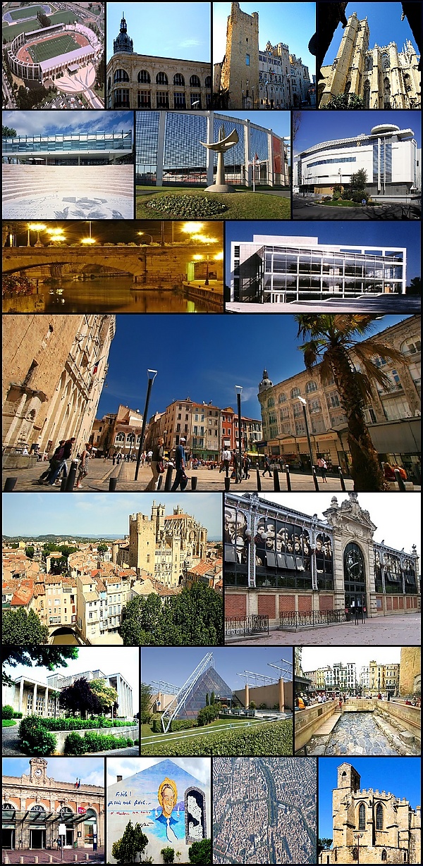 Собор святого Жюста, заложенный в 1272 году, так и не был достроен. Он знаменит необычайно высокими хорами и в целом следует образцу готических храмов севера Франции. Базилика святых Павла и Сергия — один из первых на юге Франции примеров готики. Дворец архиепископов был перестроен в XIX веке; от его средневекового предшественника сохранилось несколько мощных башен. В настоящее время во дворце размещён краеведческий музей.